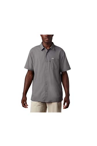 100% poly, Omni-Shade™ UPF 50 sun protection, Omni-Wick™. Vented, front pocket, utility loop