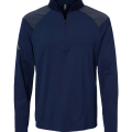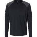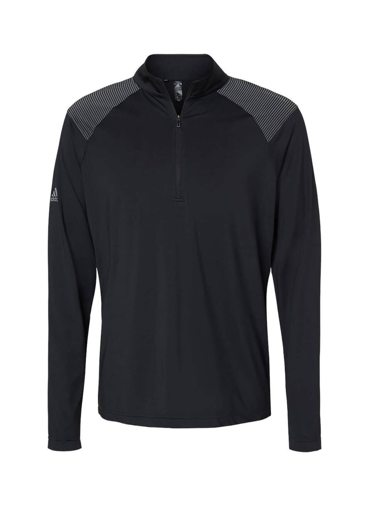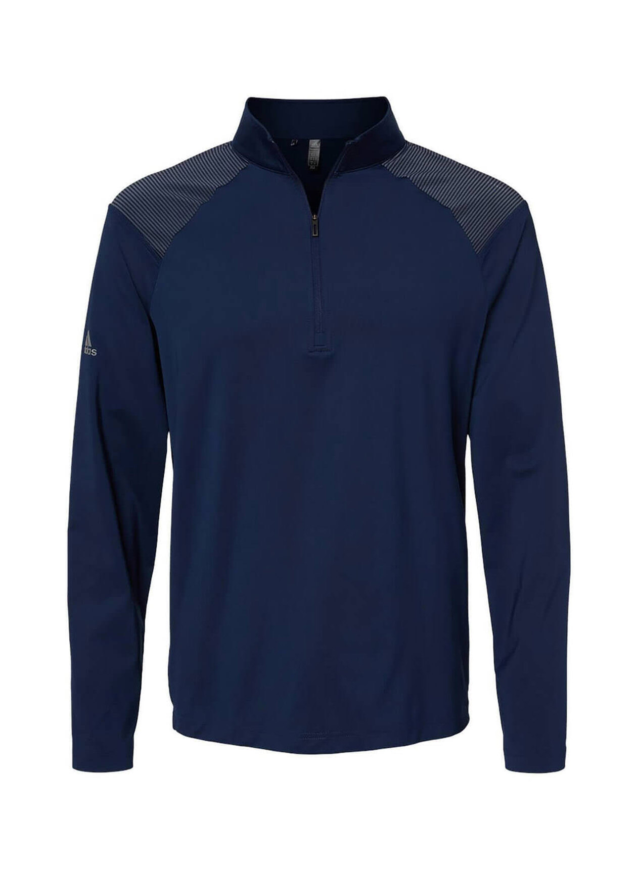 6oz. 881/2 recycled polyester/elastane. Moisture-management properties. Self mock collar. Bottom cuffs and hem. UPF 50+
